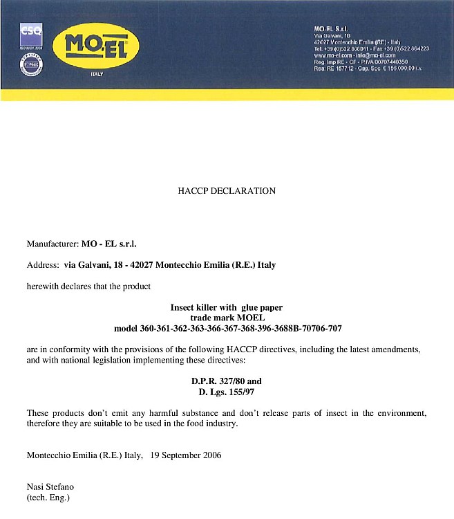 HACCP declaration
