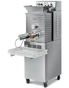 TR 75 - TR 95 - TR 110 - TRD 110 - TR 110 S - TRD 110 S - TR 150-TR15+MS 80+NS TR Mașini de paste proaspete pentru producerea de diverse forme și dimensiuni de paste, cu mixer și extruder cu șurub. Disponibil cu o gamă largă de fitinguri și autocolante și unele modele cu o carcasă din oțel inoxidabil. Are o capacitate de 23-150 kg/h si unul sau doua rezervoare.