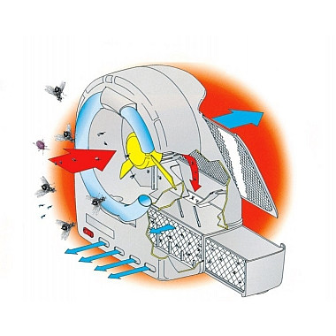 Sistemul natural de ademenire atrage insectele, deoarece se apropie de distrugator identificându-l ca habitat natural al acestora. Un sistem de aspirație le aspiră într-un sertar interior, din care nu pot scăpa. În compartimentul închis de depozitare a insectelor există o lampă specială UV-C GERMICID. Această lampă UV-C se dezinfectează în timpul descompunerii insectelor bacterii din tava de colectare a insectelor și inhibă căile respiratorii și dezvoltarea altor boli.